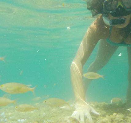 Mit seinem glasklaren und sauberem Wasser ist der Cilento ist ein wahres Paradies für Taucher und Schnorchler. Neben den herrlichen Badestränden gibt es zahlreiche kleine einsame Buchten. Die abwechslungsreiche und faszinierende Unterwasserwelt lädt förmlich dazu ein entdeckt zu werden. Und zu entdecken gibt es auf dem sandigen Meeresboden viel. Die Unterwasserlandschaft mit Felsspalten, Neptungras, der Schönheit der Anemonen und roten und orangenen Korallen beherbergt zahlreiche Mittelmeer Fische und andere Meeresbewohner wie z.B. verschiede Barsch- und Brassenarten, Seesterne, Krebse, Seeigel, Unterwasserschnecken, Schrimps und Muränen. Auch Sardinen und Hornhechte schwimmen im Flachwasser. Die Fischschwärme bieten traumhafte Unterwasserfotomotive mit den bunten Algen und Seegräsern im Hintergrund. Quallen sind im Meer des Cilento rar. Das verdankt die Region dem perfekten Austausch des Wassers durch die Temperaturunterschiede zwischen Mittelmeer und Atlantik. Dieser Austauschstrom beginnt in der Meerenge von Gibraltar von dort aus gelangt sie an die die tyrrhenische Küste und sorgt dafür, dass die Strände des Cilento immer glasklares Wasser bieten, das zum Baden und Schnorcheln einlädt.
