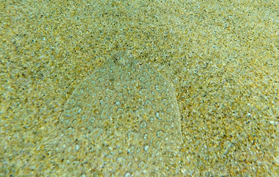 Perfekt getarnt lebt der Plattfisch normalerweise auf dem sandigen Boden in 10-60m Tiefe. Wir haben mehrere Exemplare in Santa Maria di Castellabate bei einer Tiefe von etwa 2m beim Schnorcheln im Juni entdeckt. Der Einzelgänger ernährt sich von kleinen Fischen.